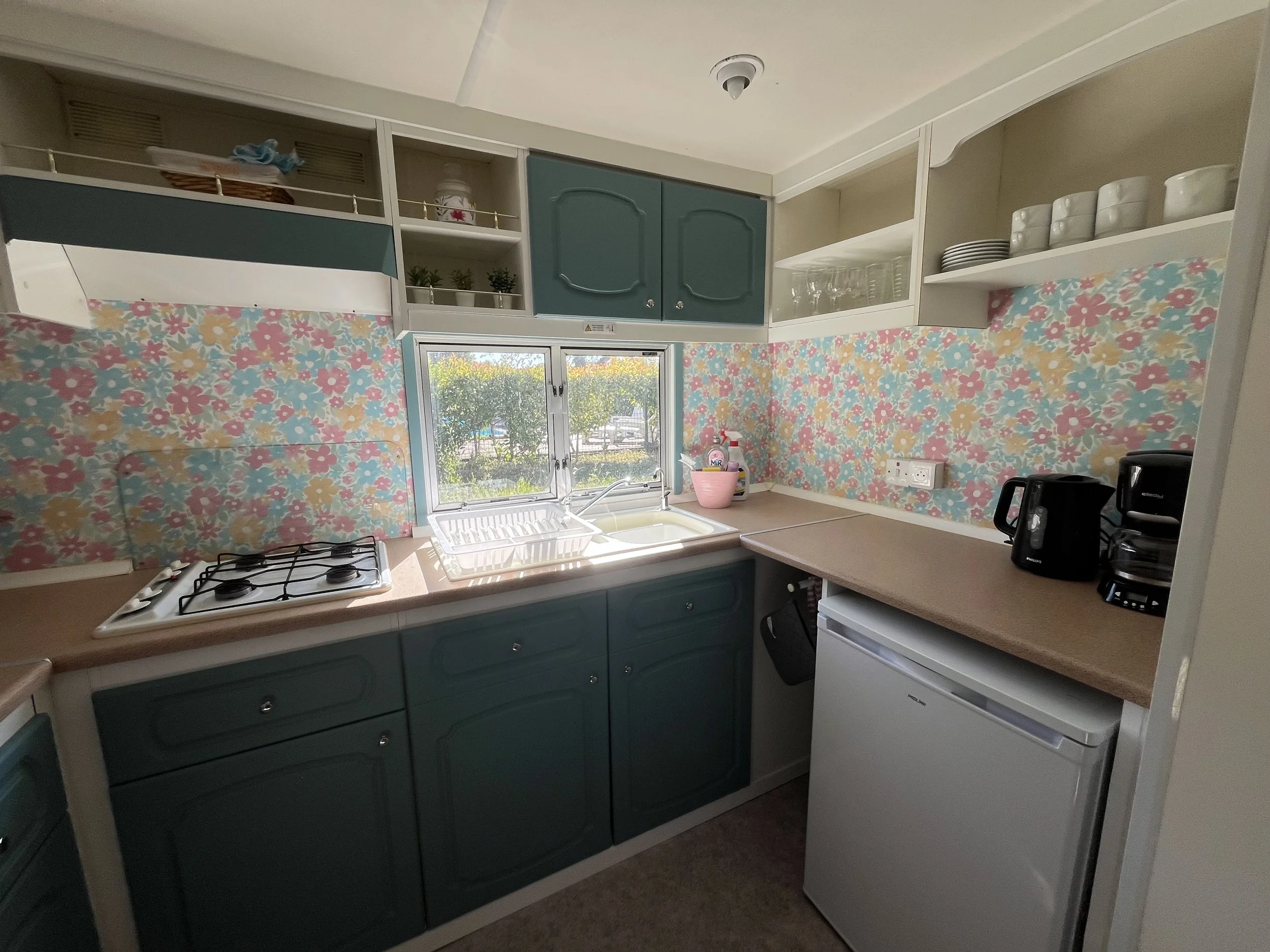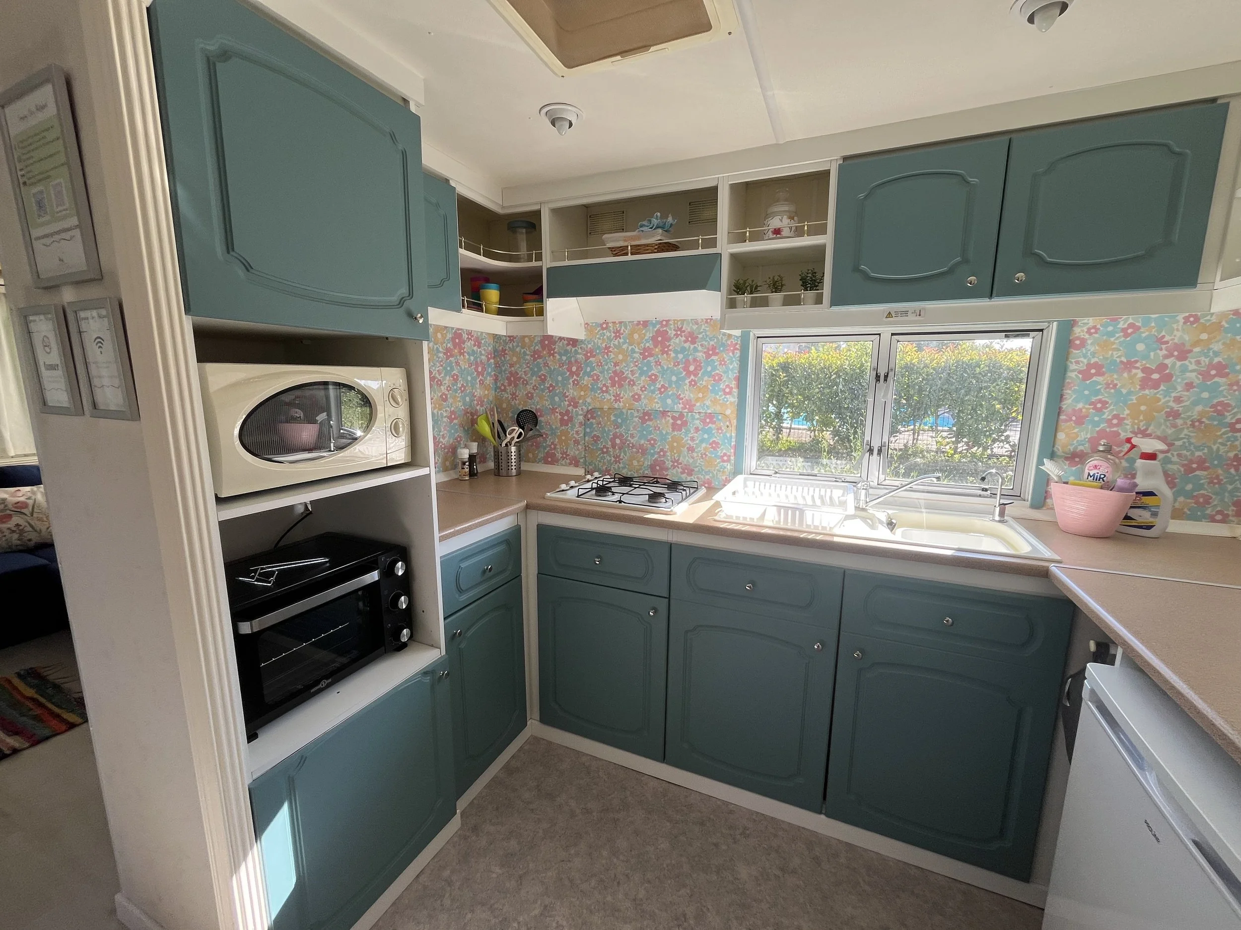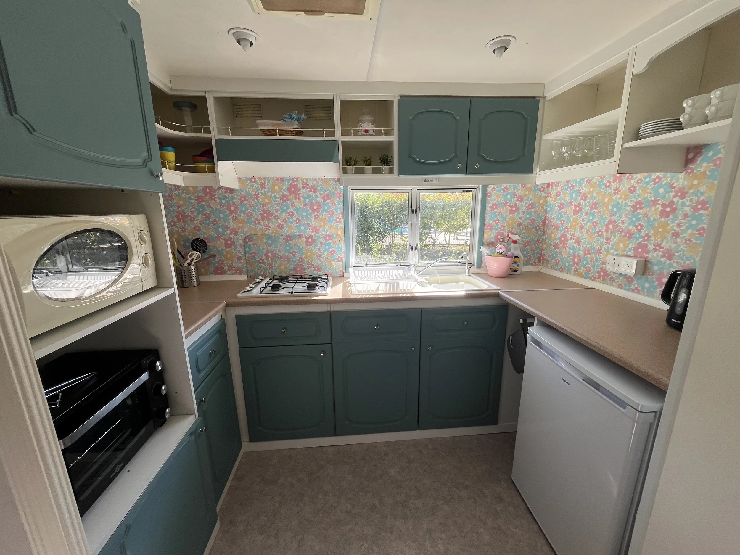 The Mobile Home has a fully equipped kitchen with an oven, hob, fridge freezer, kettle, coffee machine and microwave. All utensils and crockery are provided.